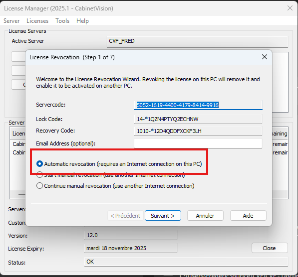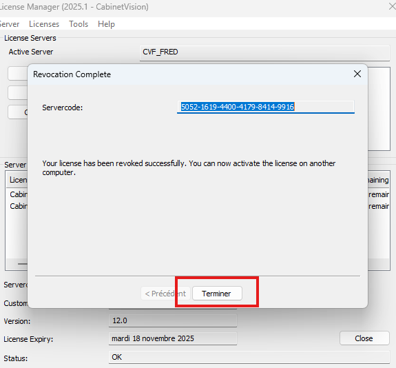 Une fois ces deux informations associées, la licence devient liée à cet ordinateur et ne peut plus être activée sur un autre appareil sans procéder à la révocation.