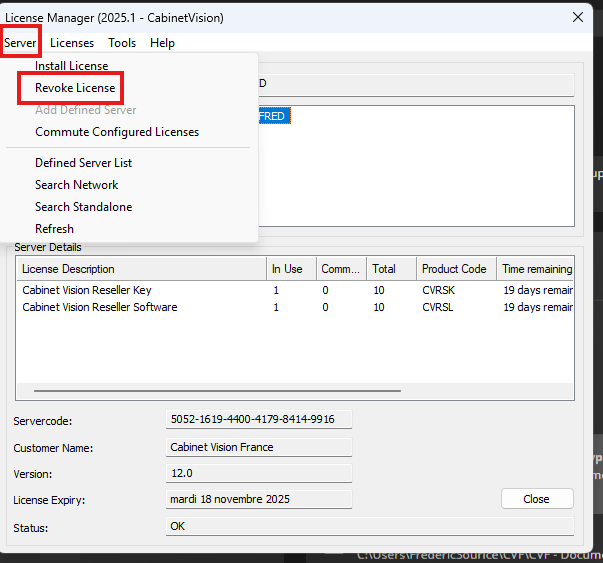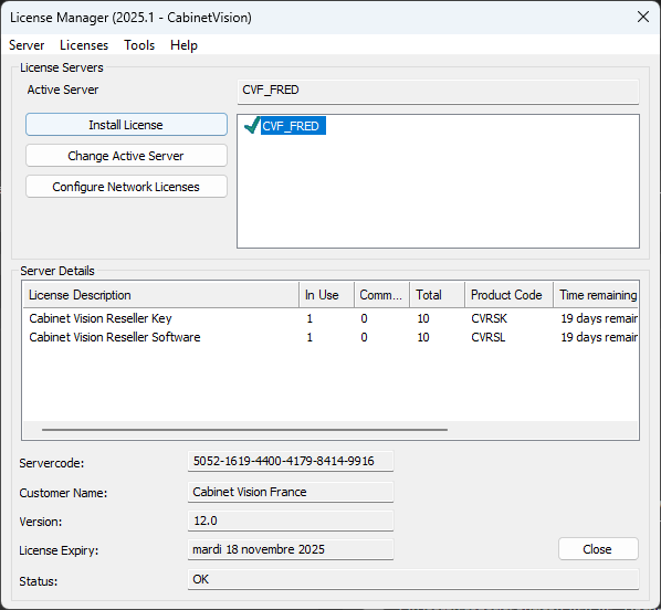 Fermer Cabinet Vision et ce rendre dans le gestionnaire de licence qui ce trouve généralement dans: "C:\Cabinet Vision\Common XXXX\CLS XXXX.x"