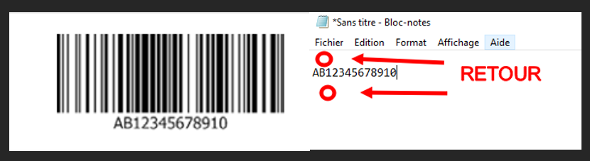 Le texte du code barre apparaît clairement a l'écran, et le curseur va à la ligne tout seul.