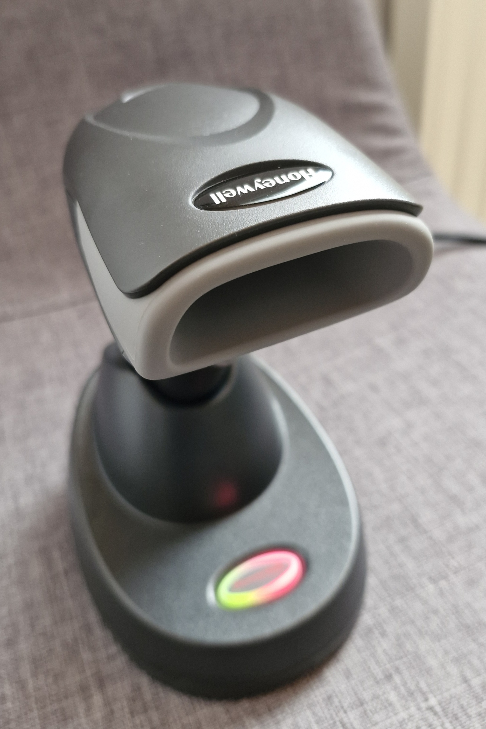 - Pauser le lecteur code barre sur la base pour le mettre en charge. (attendre 1h)